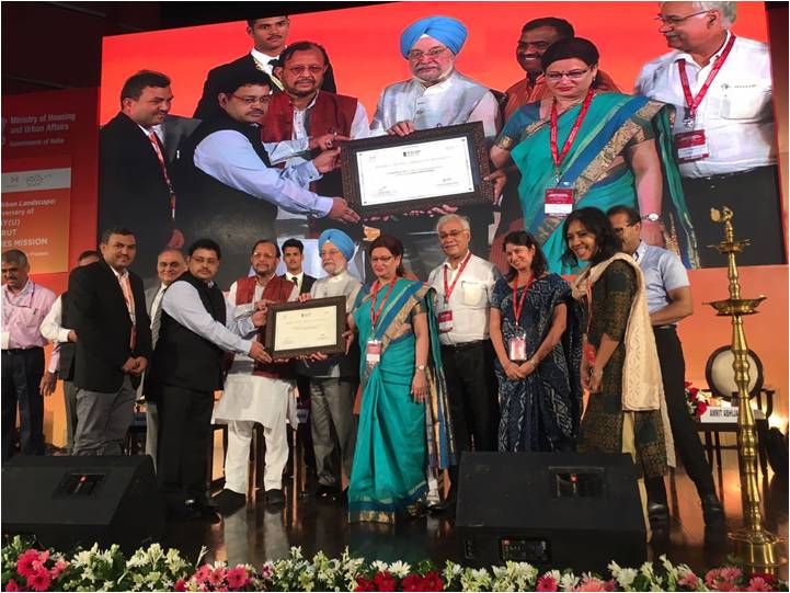 Mukta Tilak, Pune Mayor, receives the award for the best social project